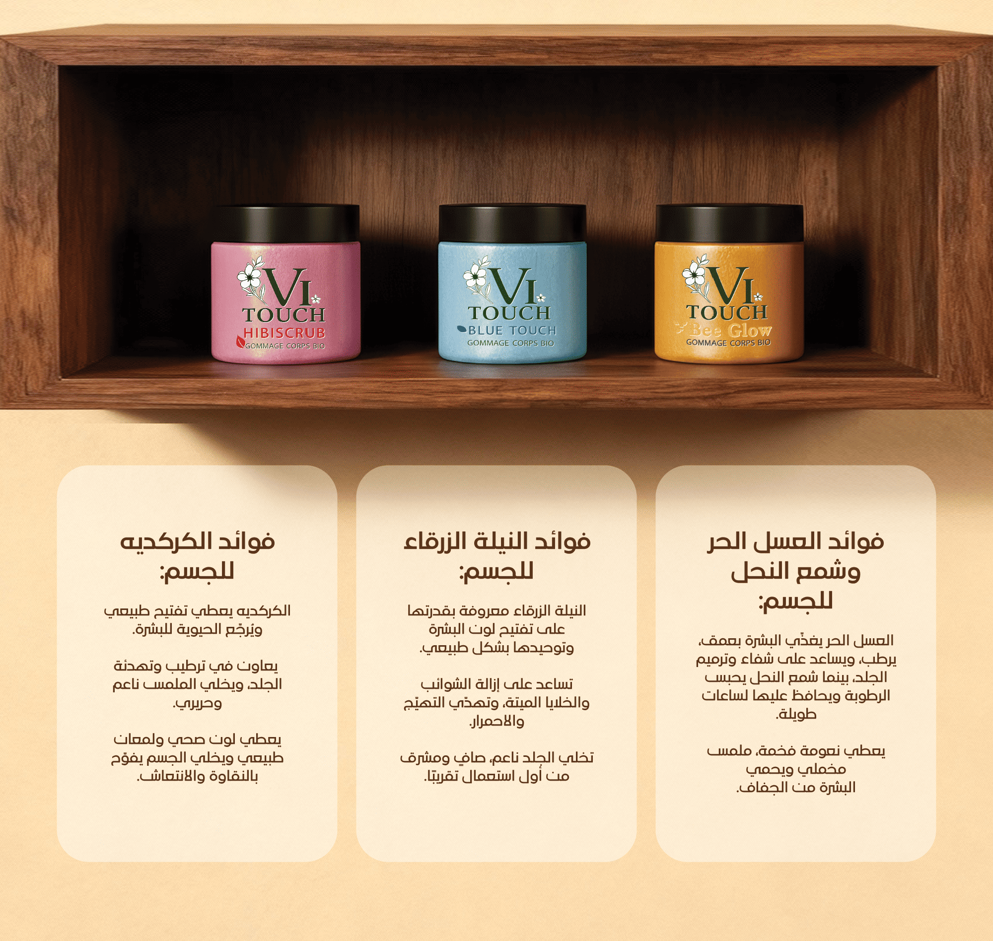 - استمتعي بعرض استثنائي من مقشرات VI TOUCH الطبيعية!