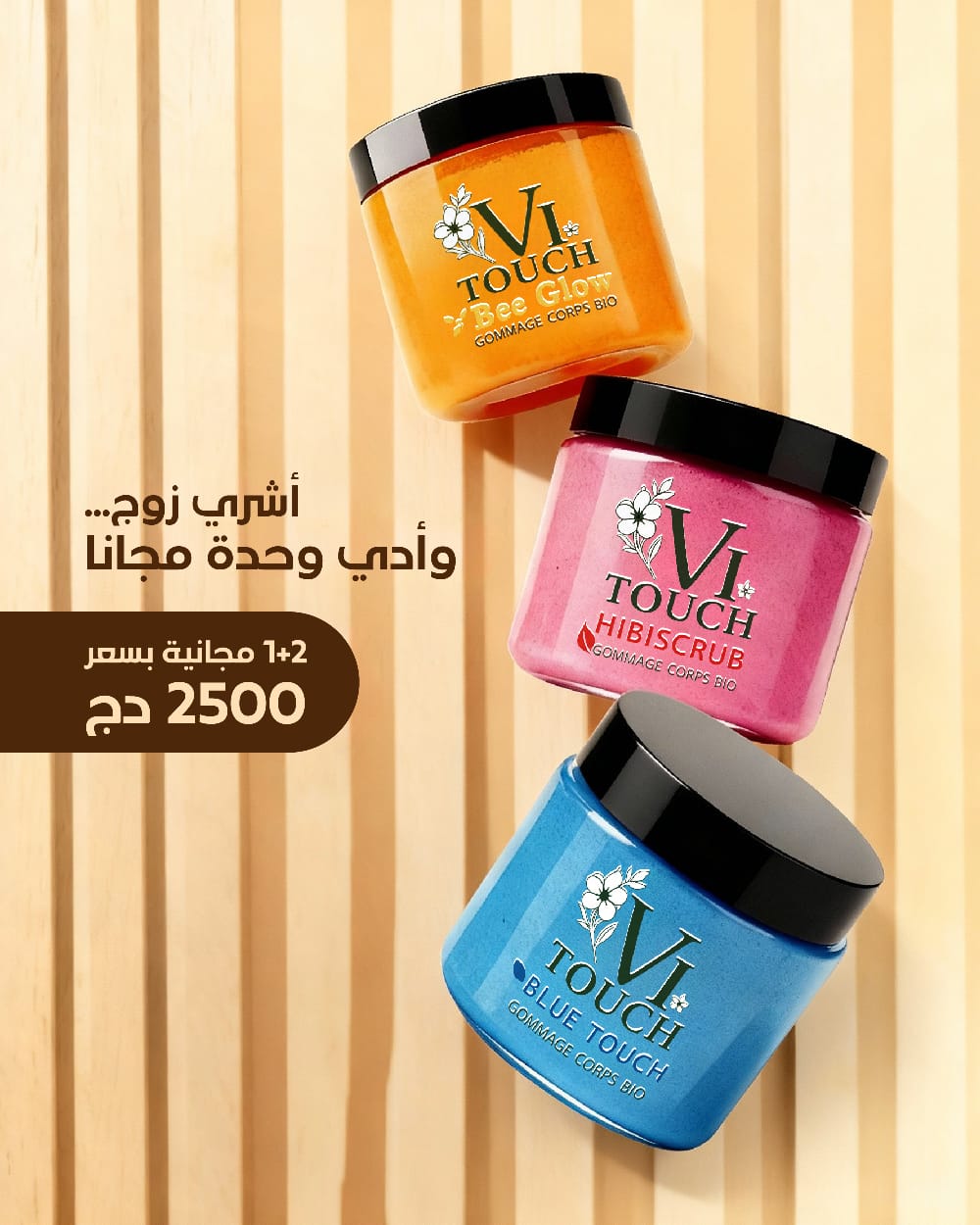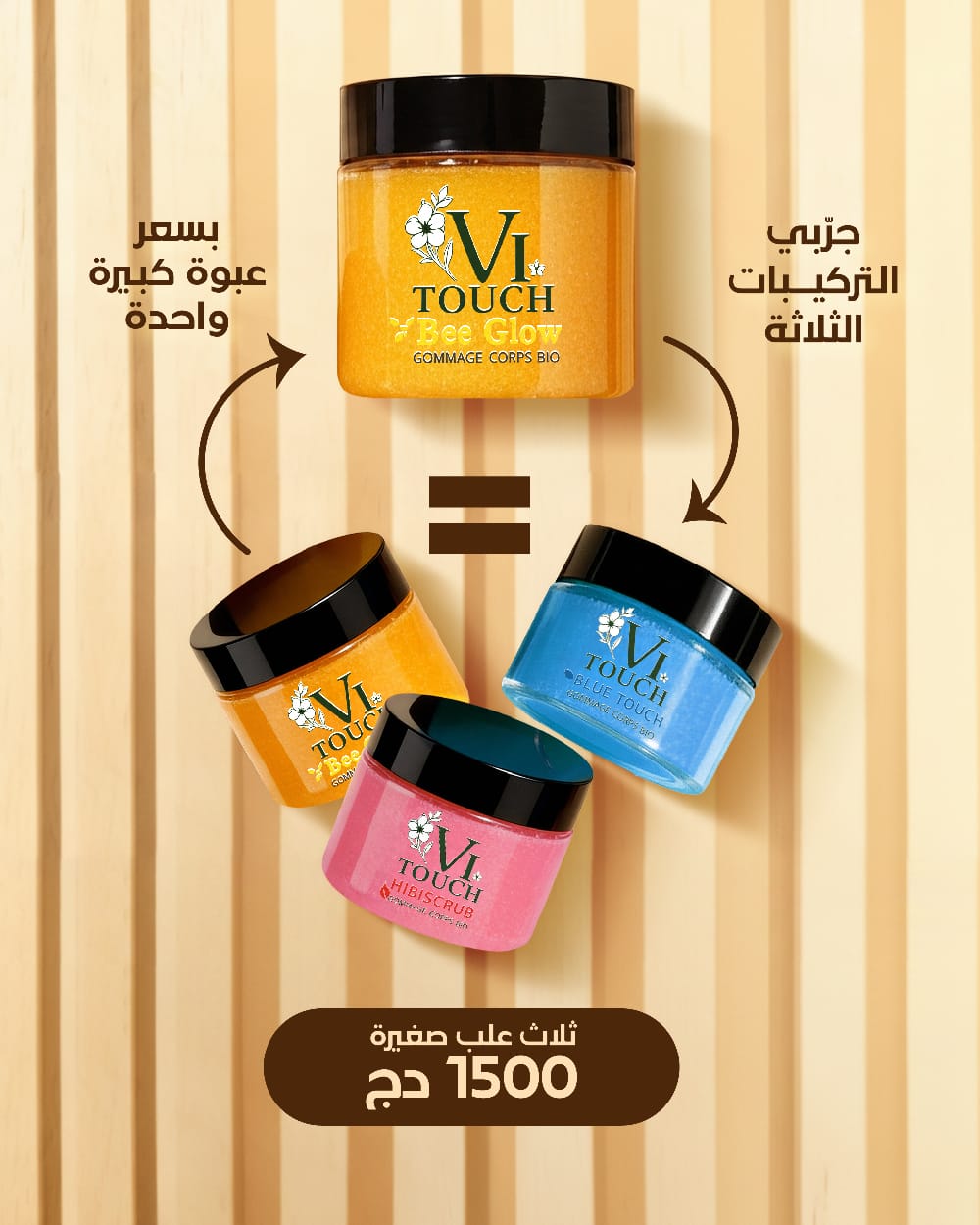 - جرّبي كل روائح وأنواع مقشرات VI TOUCH مع باقة العلب الصغيرة المميزة!